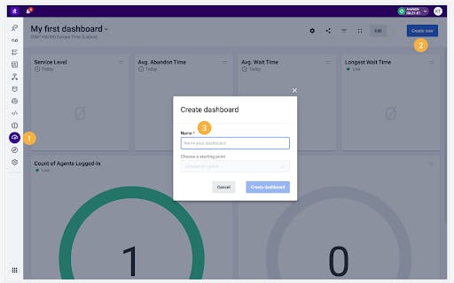 Drag and drop widgets to create an effective visual hierarchy. Place the most critical metrics (like calls in queue and wait times) prominently. Group related metrics together. Leave enough spacing for readability from a distance.